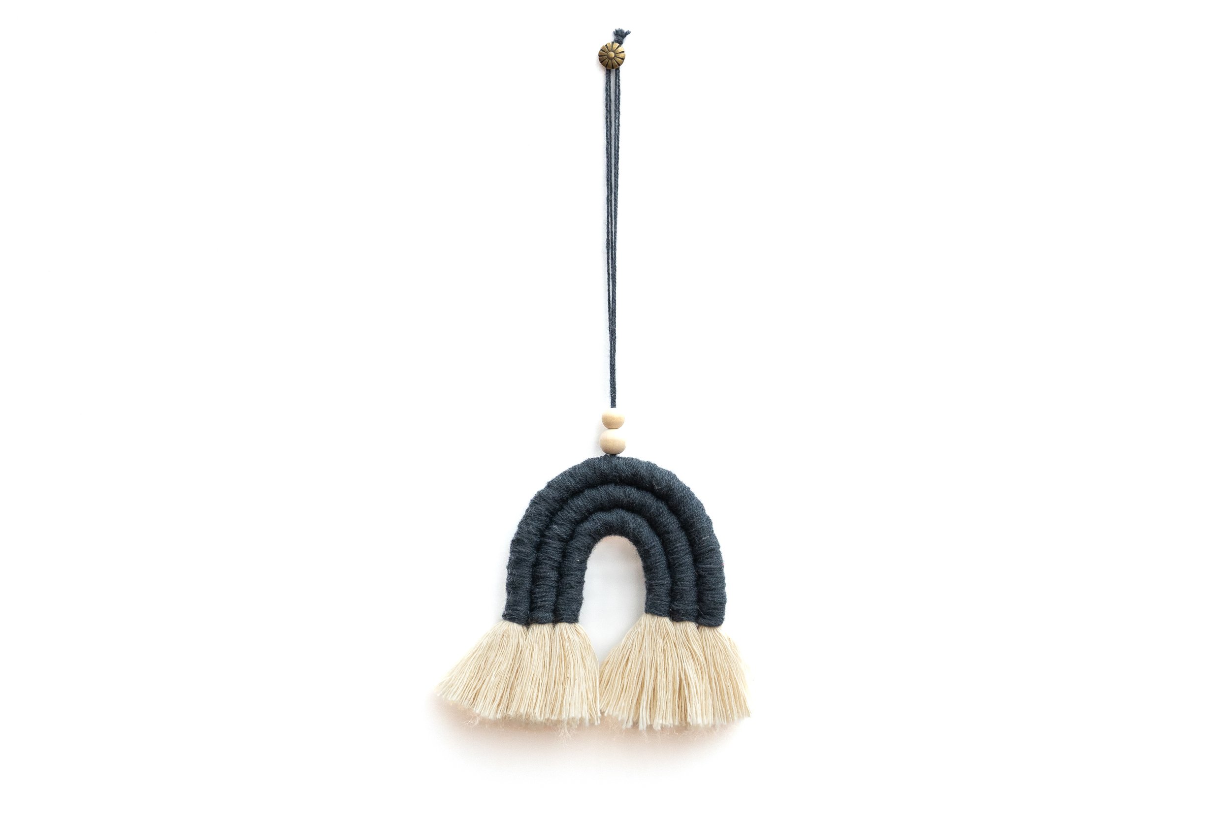 Ready to ship out! Made from all-natural 10mm cotton rope and your choice of merino wool yarn from Knitting for Olive, these colorful macrame rainbows are sewn together by hand, not glued. Because each piece is handmade, they are all unique in their own way.